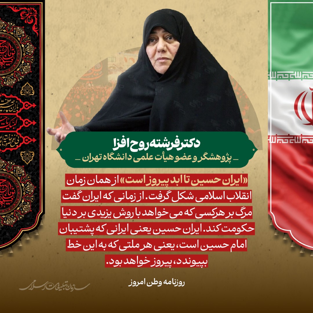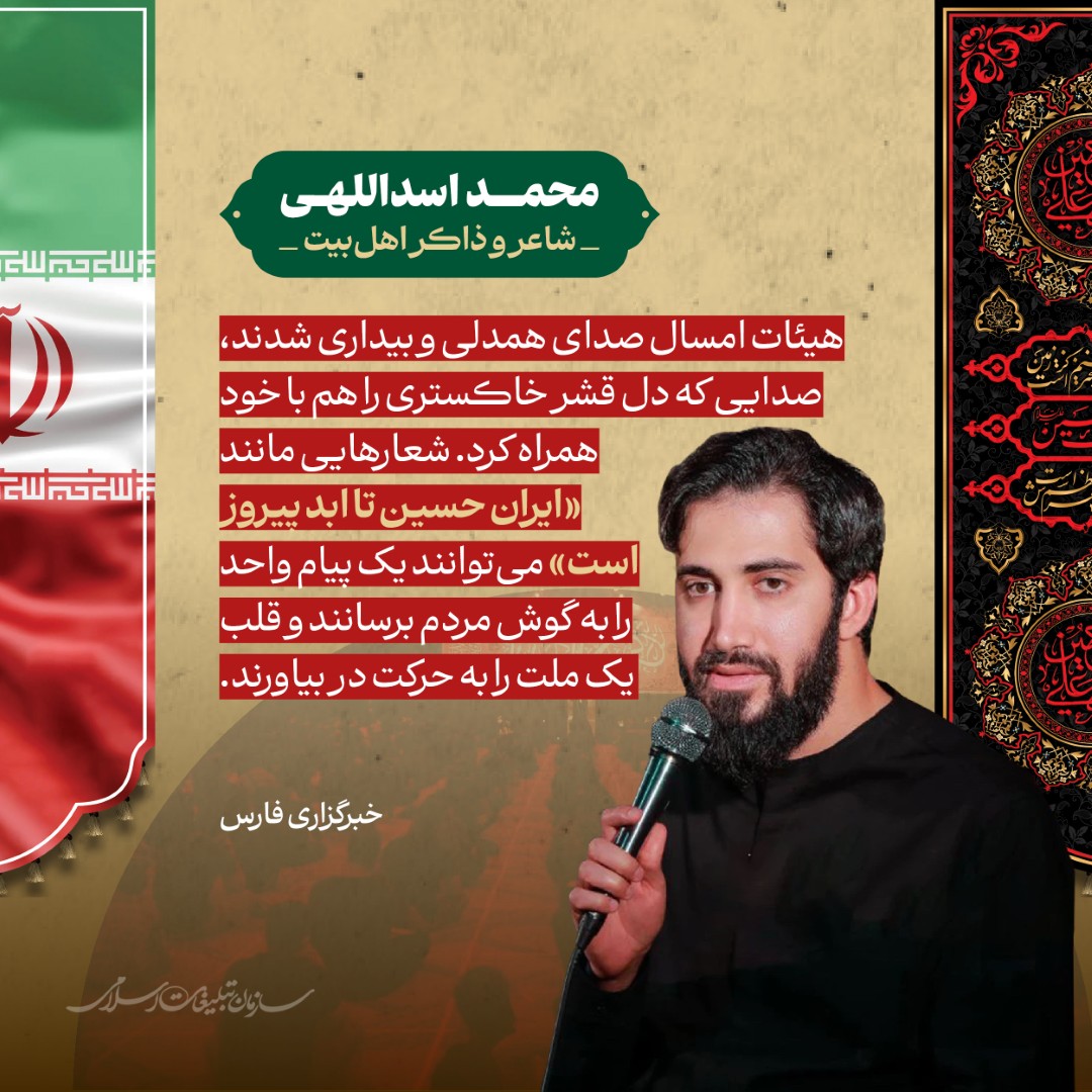 به گزارش روابط عمومی سازمان تبلیغات اسلامی، در پی تقارن جنگ تحمیلی 12روزه و ایام عزای سیدالشهدا علیهالسلام شعار «ایران حسین تا ابد پیروز است» از سوی سازمان هیات و تشکلهای دینی به عنوان شعار مشترک هیئات در محرم امسال انتخاب شد. شعاری که در اشعار مداحیها و پرچمهای عزا تا دل مردم و دستنوشتههایشان مرور شد؛ جلوهای از پیوند عمیق مکتب حسینی و آیین ایرانی با همراهی پرشور مردم کشورمان. در این اطلاعنگاشت نظر برخی از چهرهها در خصوص این شعار را باهم مرور میکنیم.