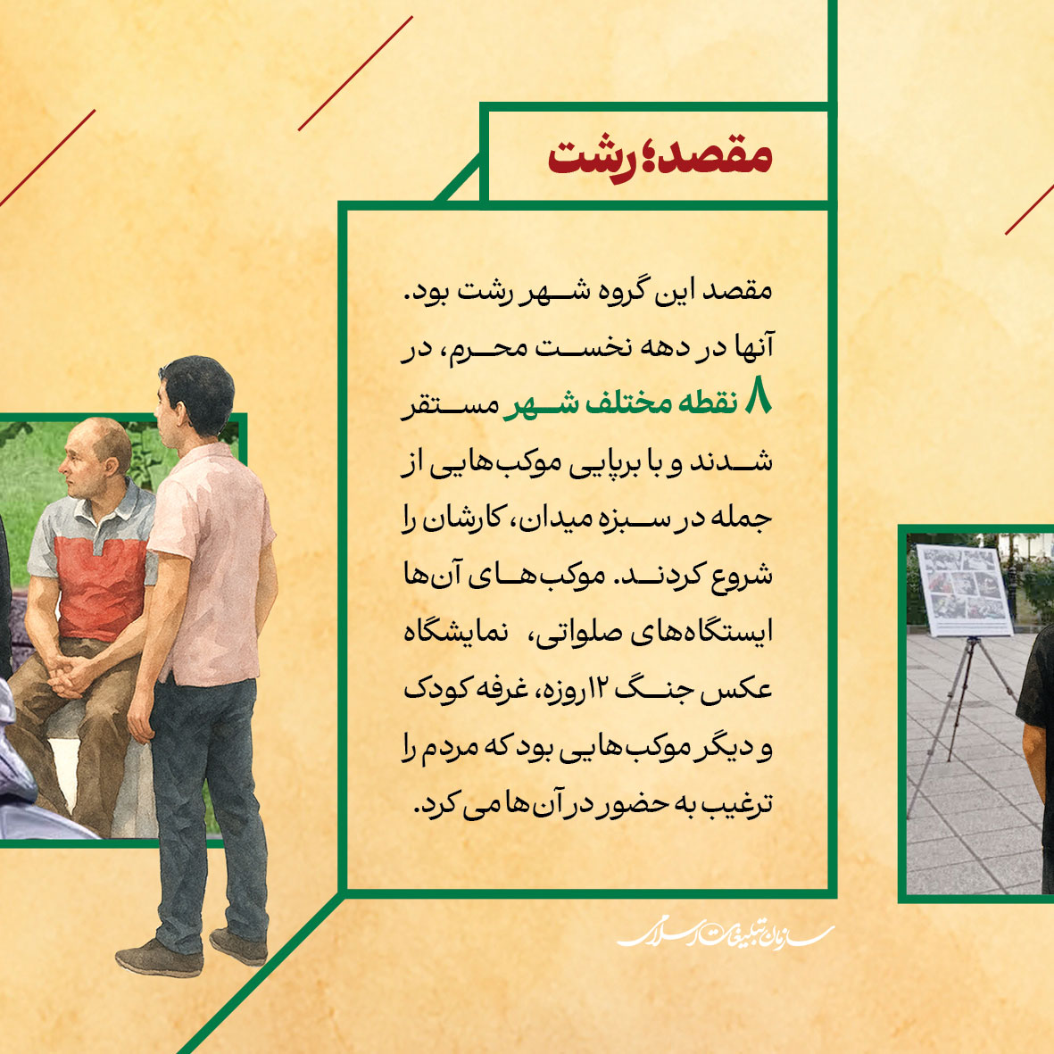 به گزارش روابط عمومی سازمان تبلیغات اسلامی، دهه اول محرم فرصت خوبی بود برای گفتن خیلی از حقایق. حقایقی از پشت پرده‌های جنگ تحمیلی اخیر که دشمن تلاش می‌کرد تا آن‌ها را از طریق بمباران خبری زیر آوار دروغ دفن کند. پس از جنگ دوازده روزه و همزمان با آغاز ایام عزاداری حضرت اباعبدالله الحسین علیه‌السلام گروهی از مبلغان نخبه قم برای گفت‌وگو با مردم و تبیین چهره به چهره راهی رشت شدند؛ این نشریه دیجیتال مروری است بر روایت تبلیغ این روحانیون جهادی.