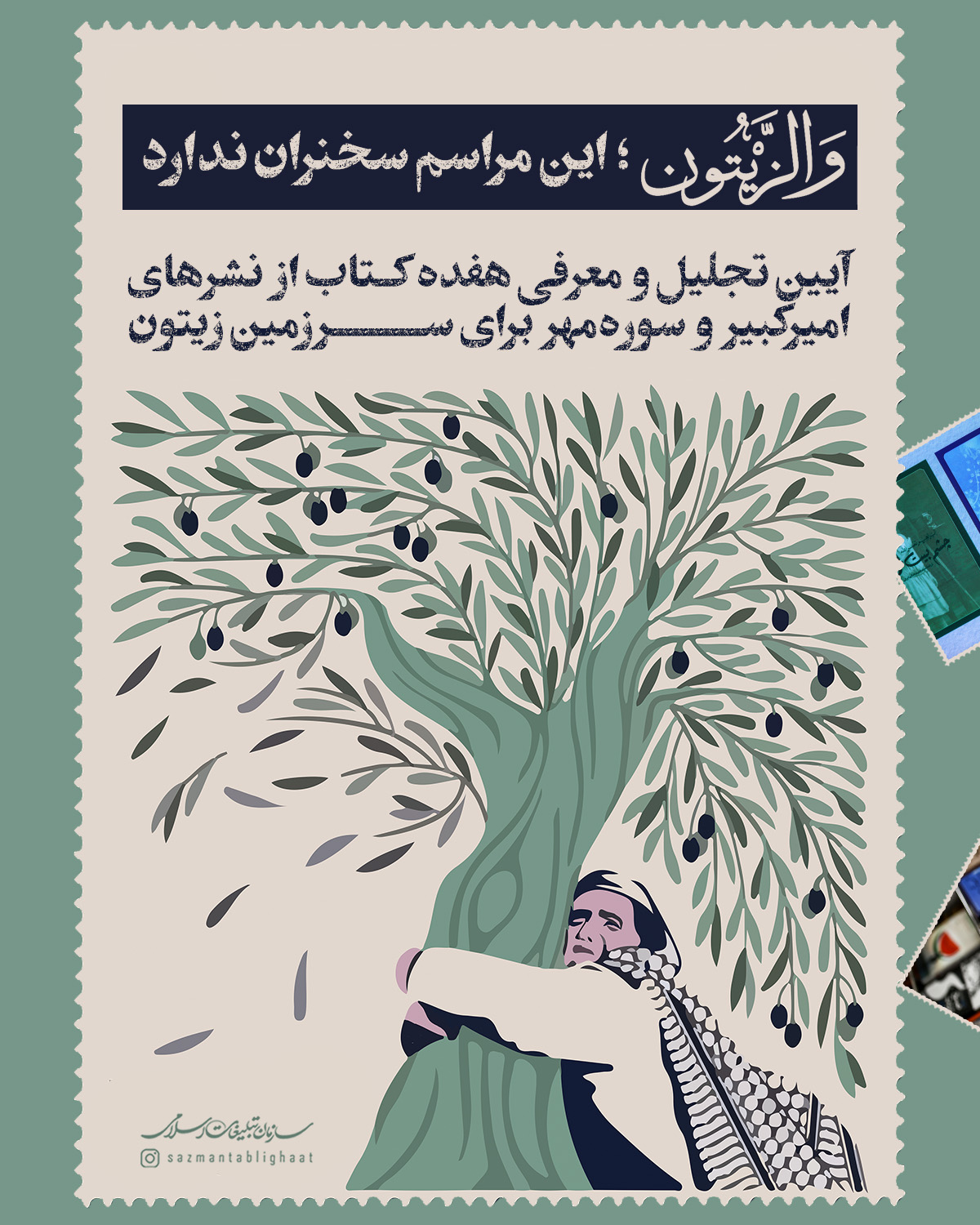آیین تجلیل و معرفی کتاب «والزیتون» با همکاری انتشارات امیرکبیر و سوره مهر در حوزه هنری برگزار شد. در این مراسم، هفده کتاب منتخب این دو نشر در حوزه فلسطین به شیوه‌ای متفاوت معرفی شدند؛ نه از طریق سخنرانی مرسوم، بلکه با اجرای نمایش، اکران مستند، پخش پیام‌های تصویری خالقان آثار و بریده‌خوانی از آثار منتخب. در این نشریه دیجیتال، نگاهی می‌اندازیم به مراسم «والزیتون» و آثار معرفی شده در آن.