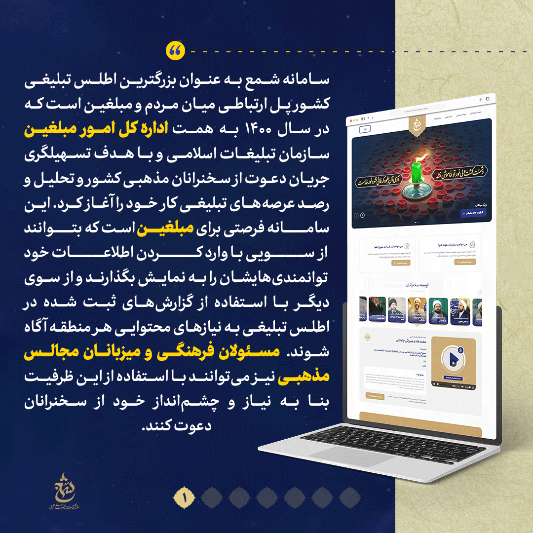 سامانه شمع به عنوان بزرگترین اطلس تبلیغی کشور پل ارتباطی میان مردم و مبلغین است که در سال ۱۴۰۰ به همت اداره کل امور مبلغین سازمان تبلیغات اسلامی آغاز به کار کرد. در این شماره از نشریه دیجیتال مروری میکنیم بر این سامانه.
