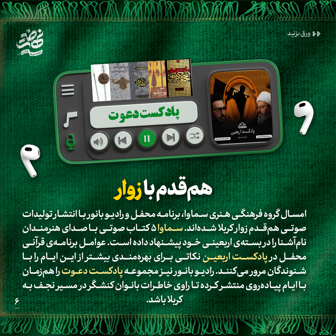 به بهانه ایام اربعین حسینی مروری میکنیم بر برخی از تلاشهای خانوادهی سازمان تبلیغات اسلامی که هریک عرض ارادتی است به ساحت والا حضرت سیدالشهدا علیه السلام.