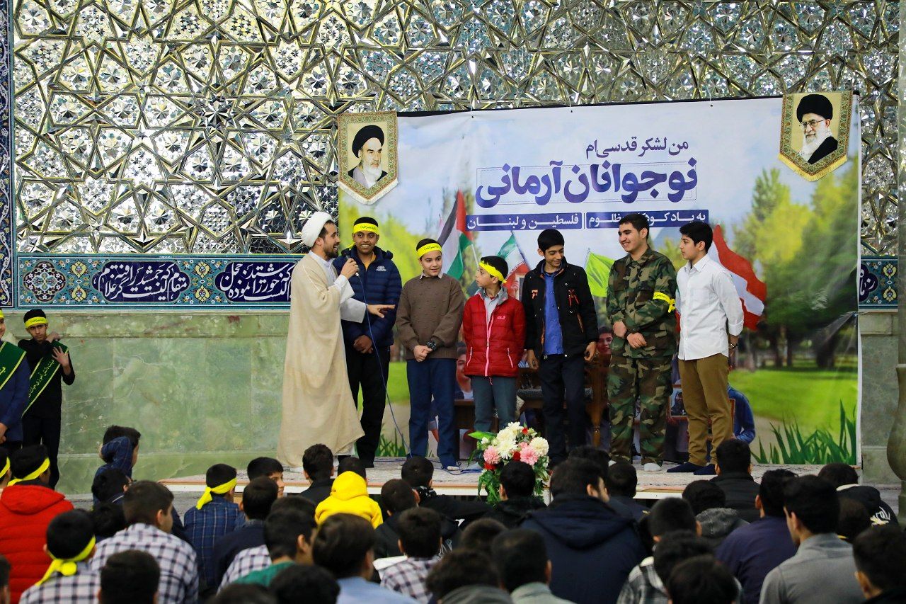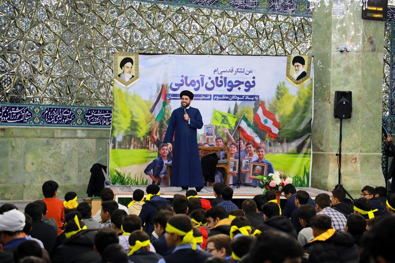 به گزارش روابط عمومی سازمان تبلیغات اسلامی، اجتماع بزرگ نوجوانان آرمانی با شعار «من لشکر قدسیام» و به یاد کودکان مظلوم فلسطین و لبنان، صبح امروز با حضور هزار و ۲۰۰ نفر از اعضای هیئات مذهبی دانشآموزی استان قم در شبستان حضرت زهرا(س) حرم مطهر حضرت معصومه(س) برگزار شد.