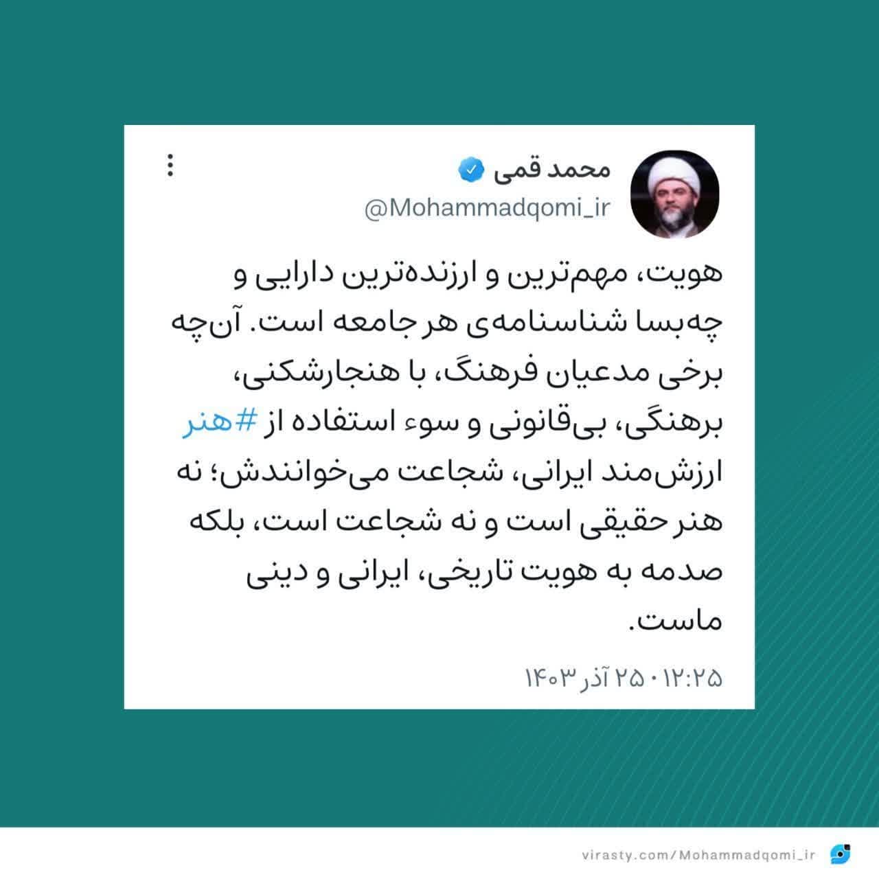 ۲۵ آذر | حجتالاسلام قمی در صفحه شخصی خود نوشت؛