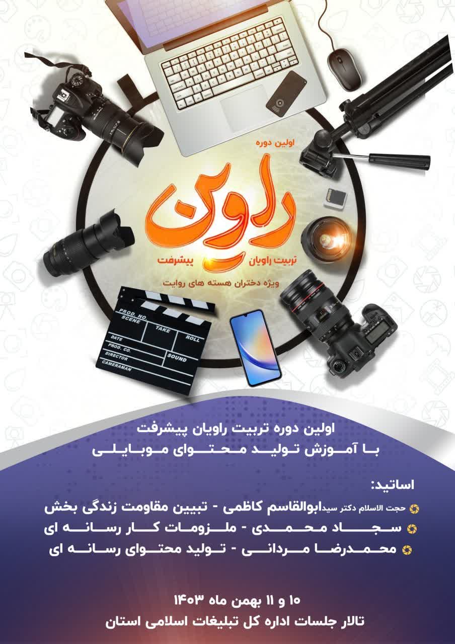 اولین دوره آموزش رسانهای «راوین» یا تربیت راویان پیشرفت از سوی قرارگاه فرهنگی بانوان چهارمحال و بختیاری طی امروز و فردا ۱۰ و ۱۱ بهمن در سالن جلسات ادارهکل تبلیغات اسلامی چهارمحال و بختیاری برگزار میشود.