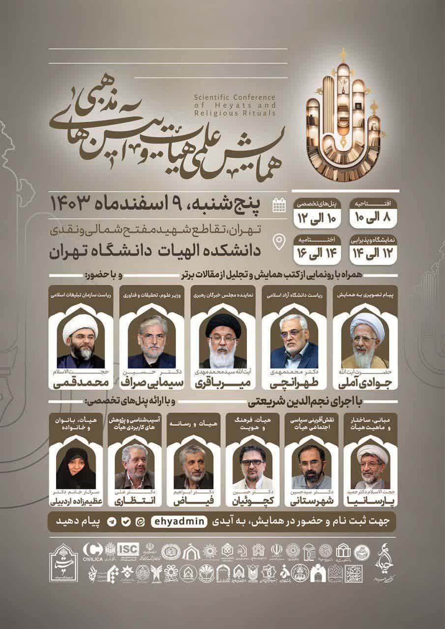 دومین همایش علمی هیأت و آیینهای مذهبی پنجشنبه ۹ اسفندماه از ساعت ۸ صبح برگزار میشود.