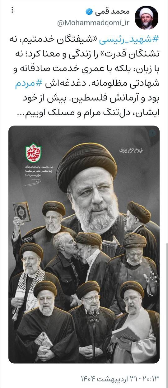 ۳۱ اردیبهشت | حجتالاسلام قمی در صفحه شخصی خود نوشت؛