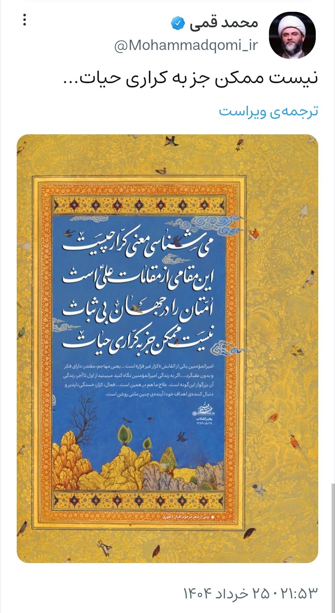 ۲۵ خرداد | حجتالاسلام قمی در صفحه شخصی خود نوشت؛