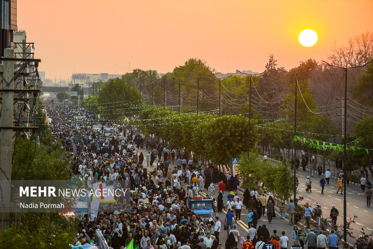 "ایران؛ ذوالفقار علی" کے نعرے کے ساتھ غدیر کا کلومیٹروں لمبا جلوس ہفتے کی شام ۱۴ جون ۲۰۲۵ کو بیک وقت پورے ملک میں منعقد ہوا۔
